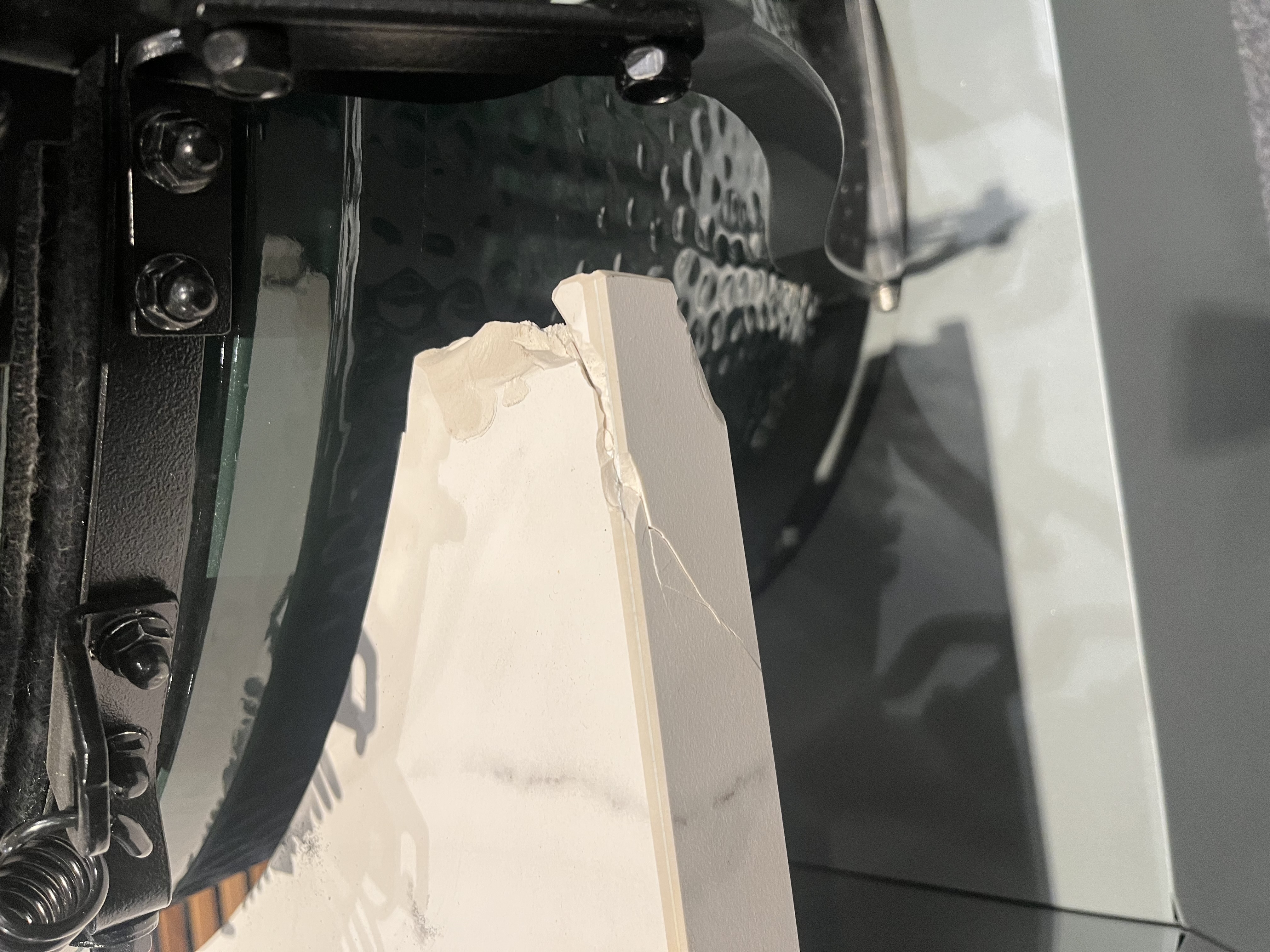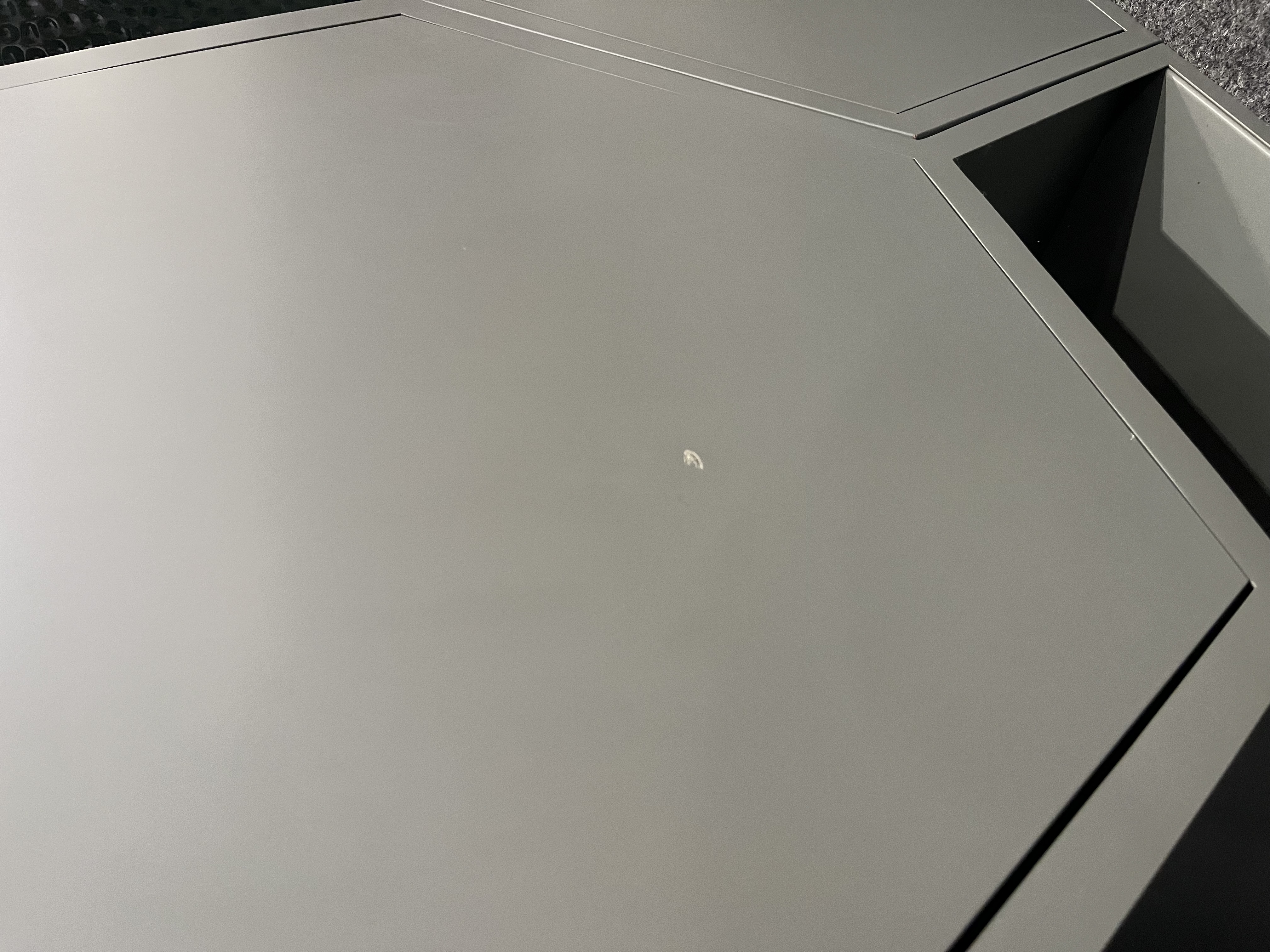 - Kleine Schädigung an der Arbeitsplatte (hinten em Egg, siehe Bild und minimaler Mangel an der Wabe Front, siehe Bild)